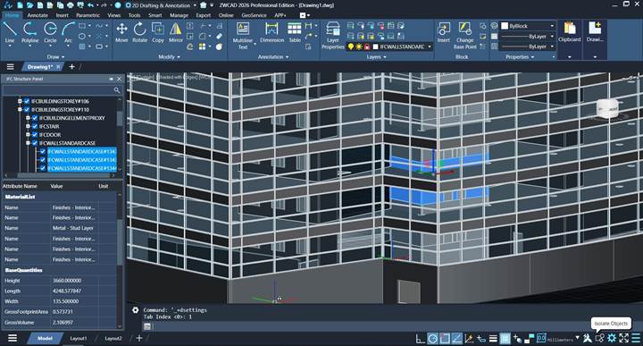 In afara functiilor de modelare si drafting oferite, ZWCAD poate fi utilizat cu succes ca aplicatie de vizualizare si editare a fisierelor IFC sau pentru obtinerea de liste de cantitati in format tabelar.