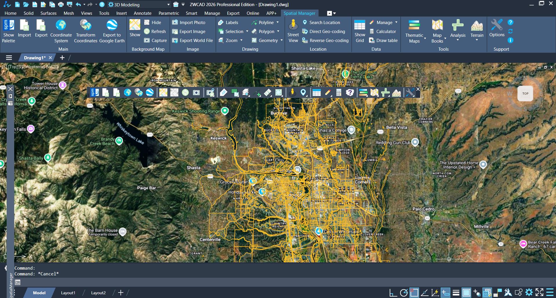 Spatial Manager™ pentru ZWCAD/BricsCAD este o aplicatie de tip add-on pentru ZWCAD Professional sau BricsCAD Pro dedicata schimbului de date geospatiale intre fisiere CAD si servere dedicate. Aplicatia ofera si managementul datelor atasate, afisarea dinamica a hartilor de fundal sau a planurilor urbanistice, cautarea si identificarea locatiilor inclusiv dupa codul postal, definirea hartilor tematice, generarea curbelor de nivel, crearea terenurilor, operatii de analiza GIS, conversia sistemelor de coordonate.